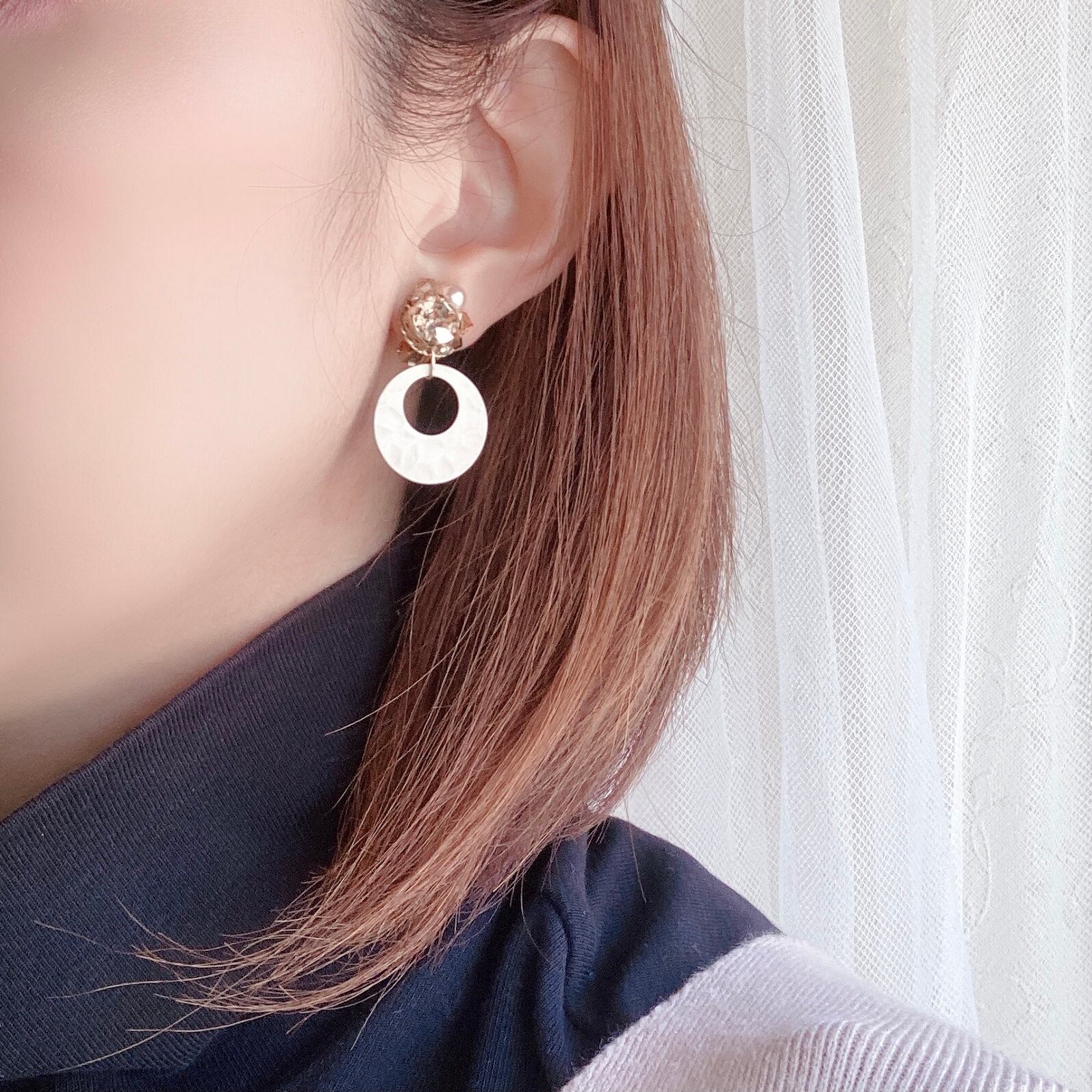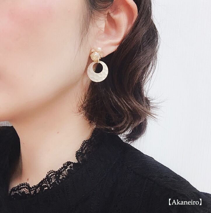 優しいマットゴールドのフープと、シルキーベージュがふんわりと女性らしい、女神の輝きのようなイヤリング・ピアス。