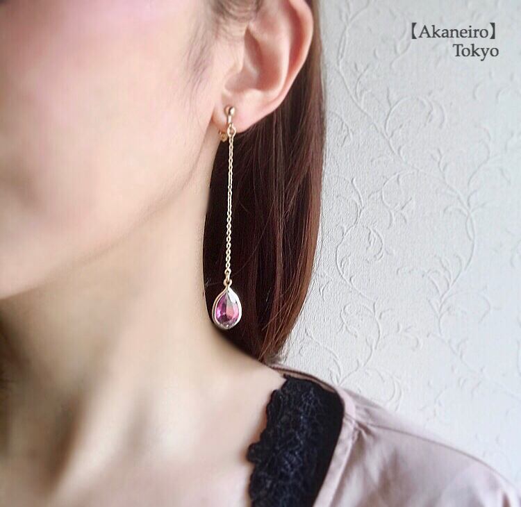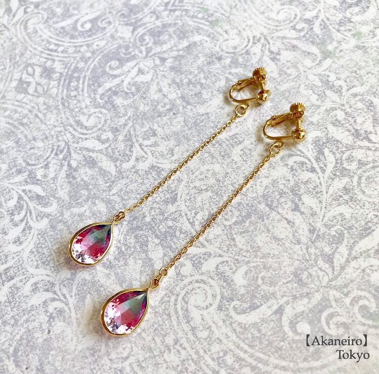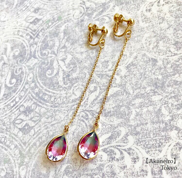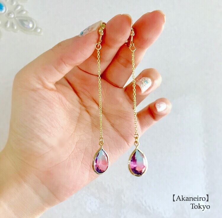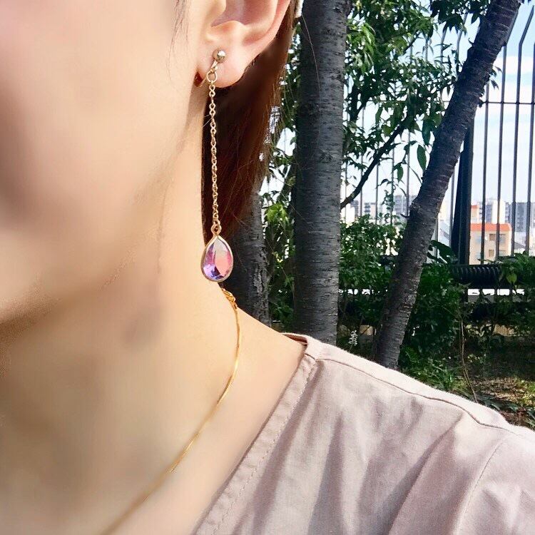 恋のしずく〜グラデーションピンク×アクア〜イヤリング