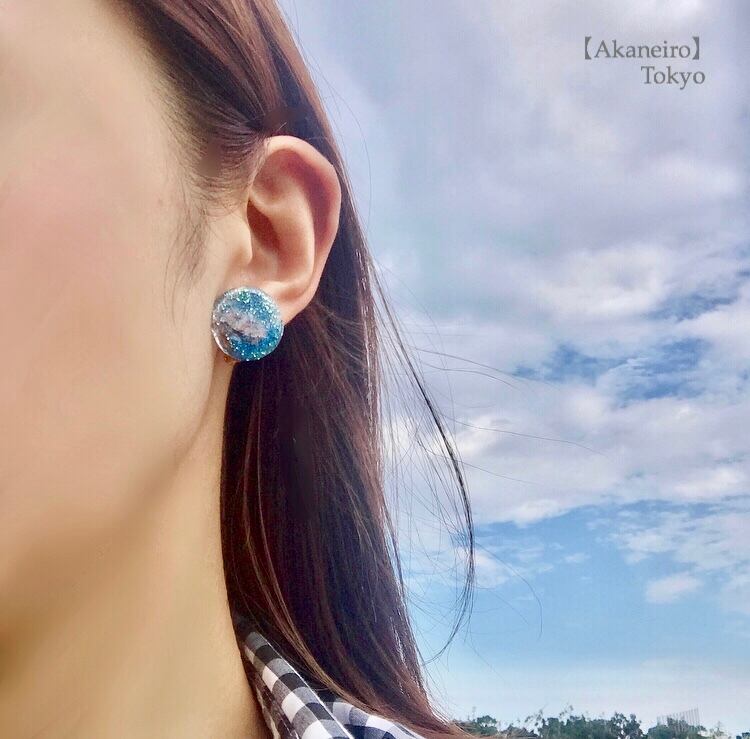 大好きなあの景色と共にすごせたら、、 そんな願いを、アクセサリーに込めて作った、夏の思い出イヤリングです。
