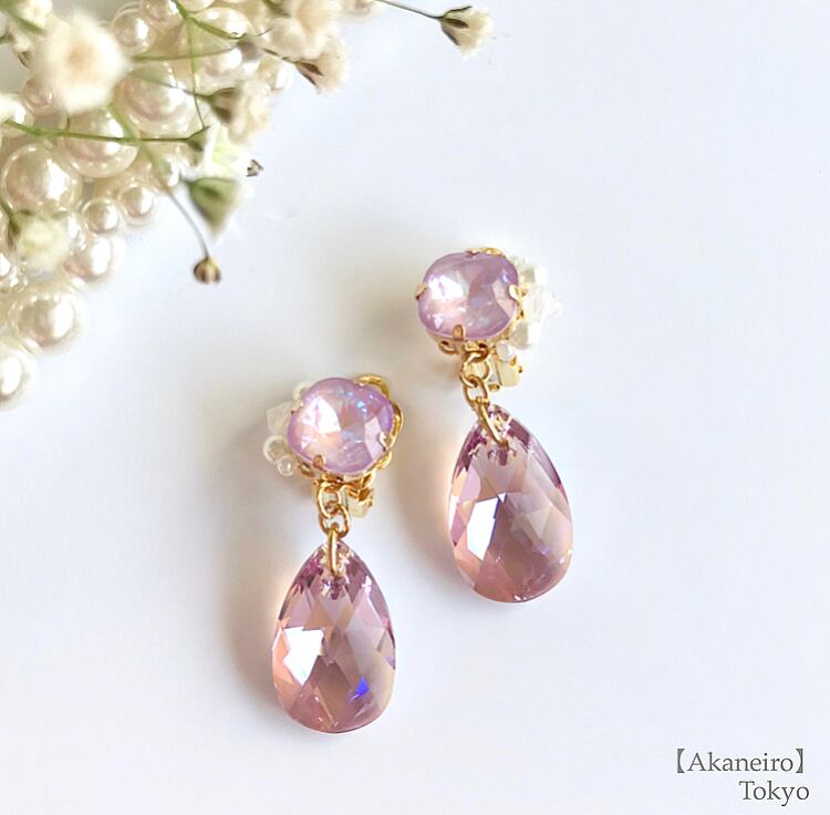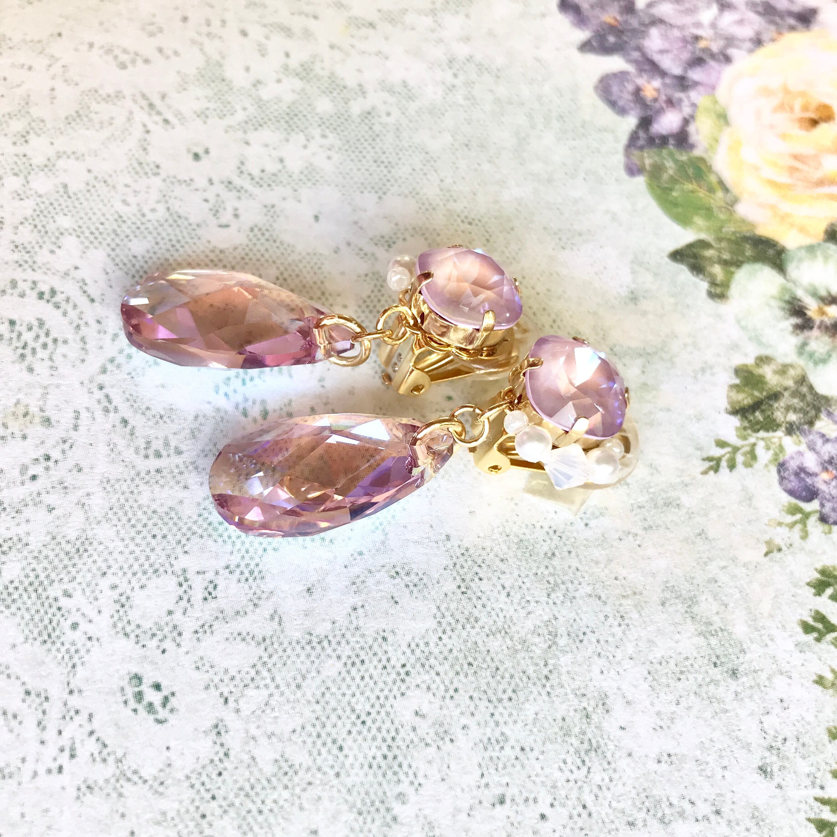 透明感たっぷりのラベンダースワロフスキーを主役にした、みずみずしいイヤリング・ピアス。