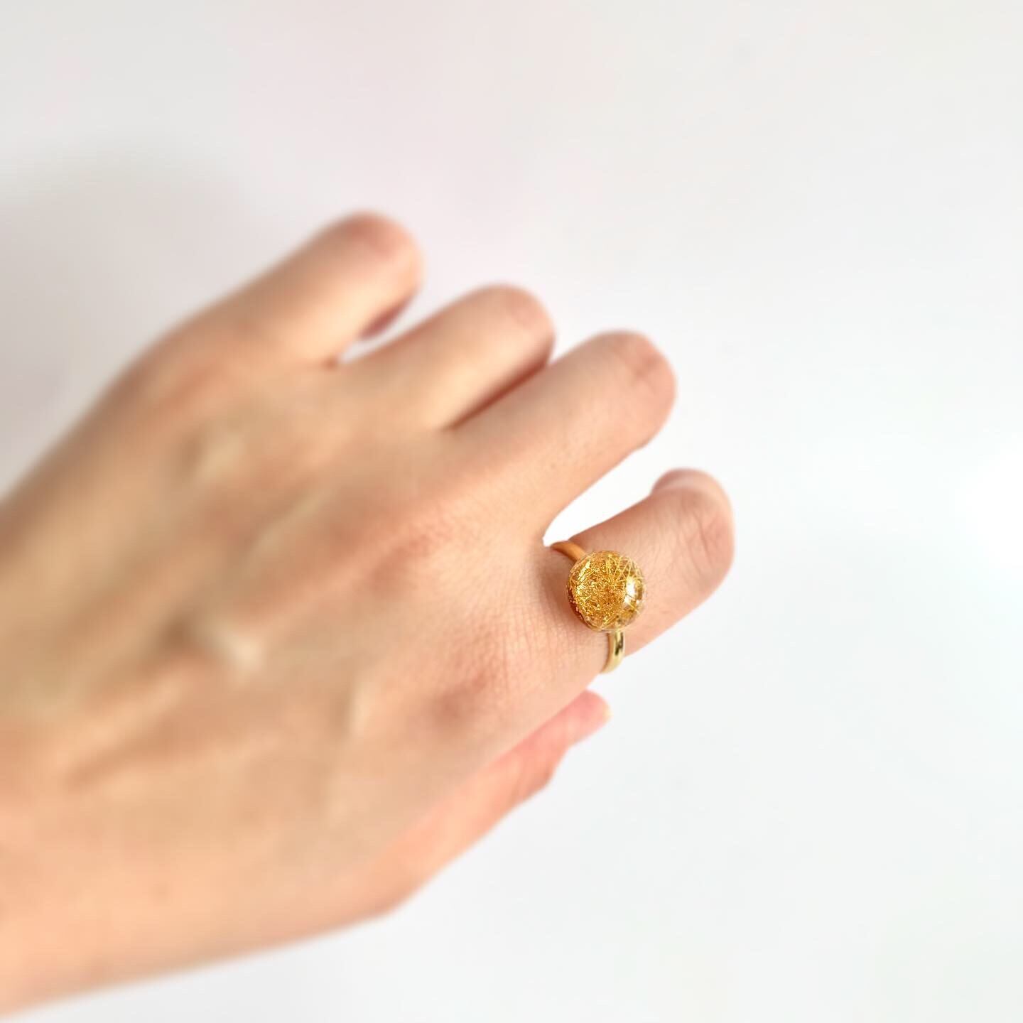 まんまる、リング、上品、シンプル、キラキラ、純銀、透明感、丸、太陽、ゴールド、金、ミニリング、プチリング、指輪、ギフト、贈り物
