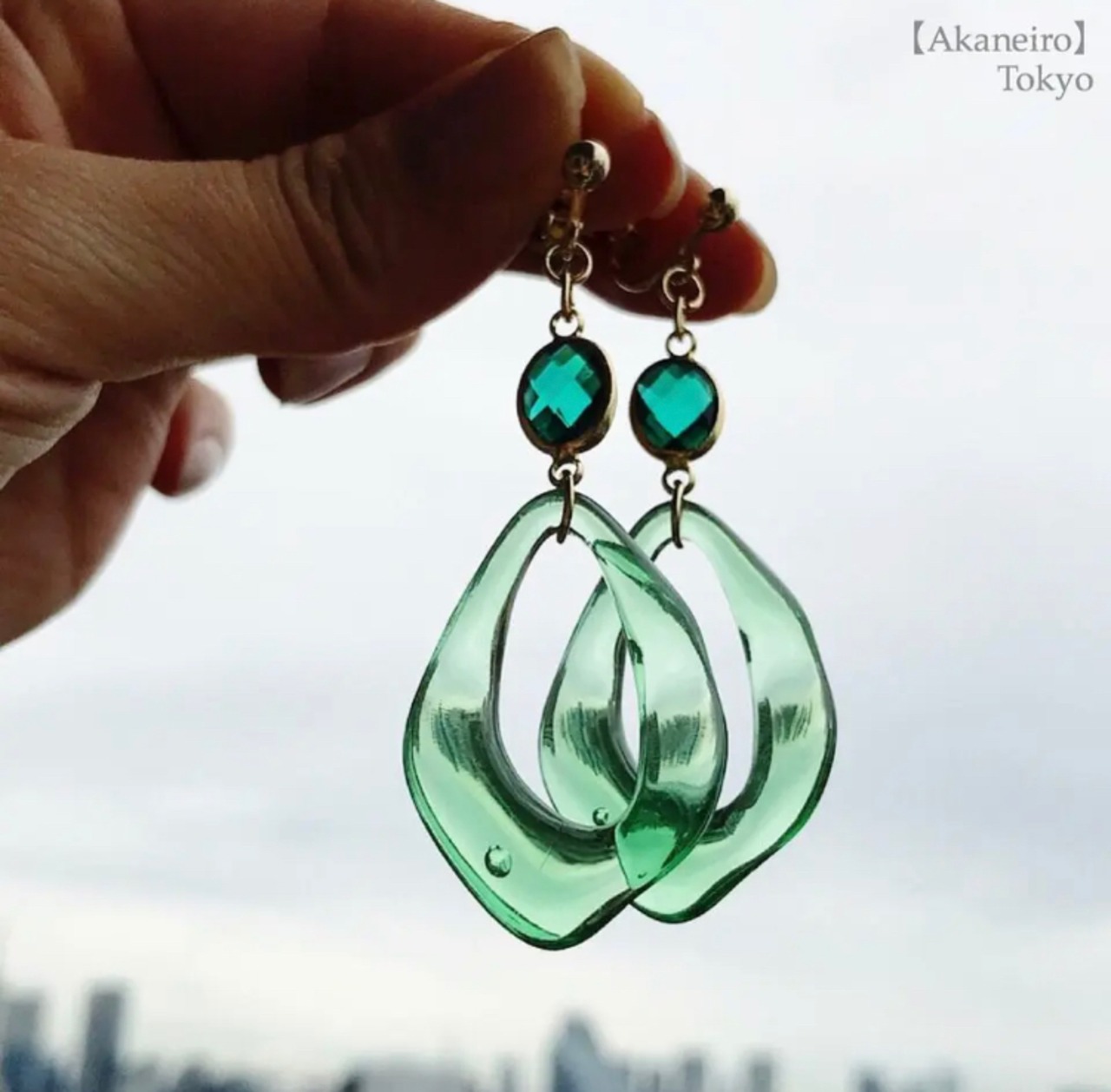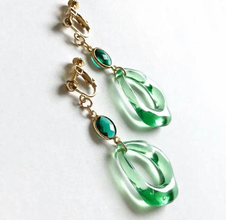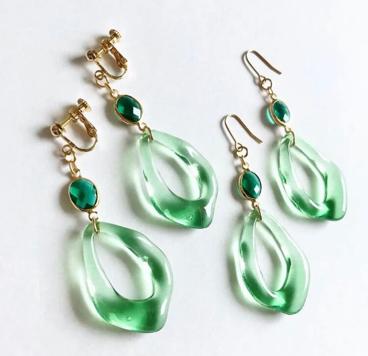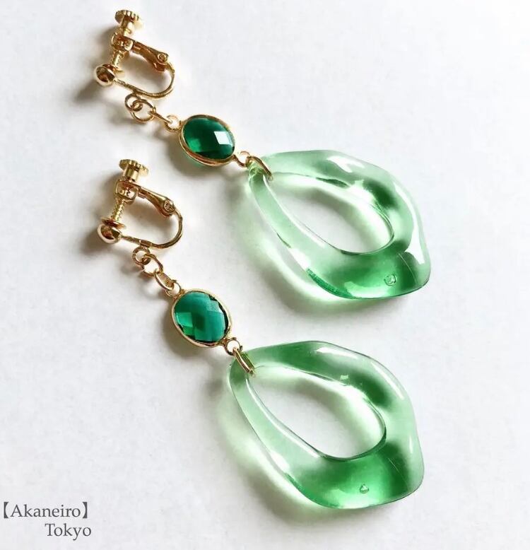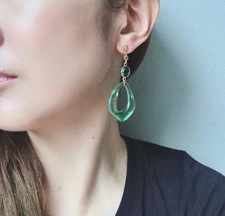 ~爽やかなグリーンが透き通る、風にそよぐ 軽量グリーンのアクリルイヤリング・ピアス~