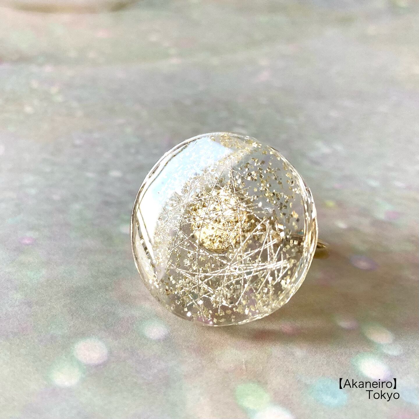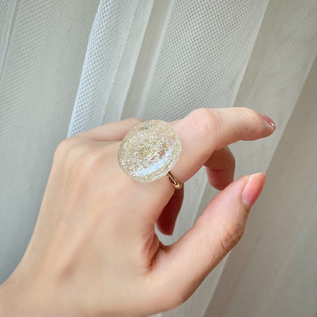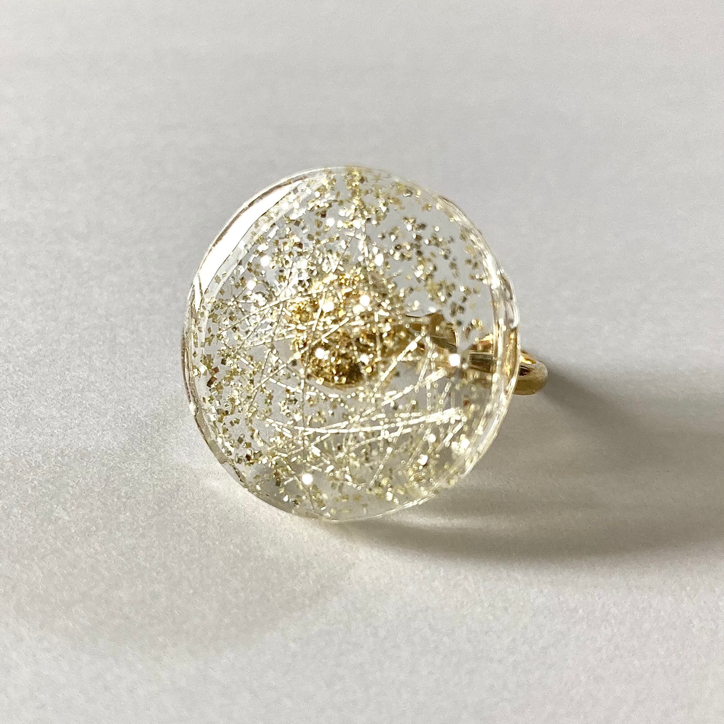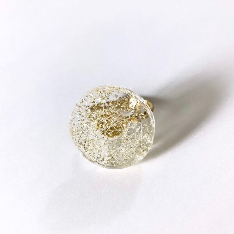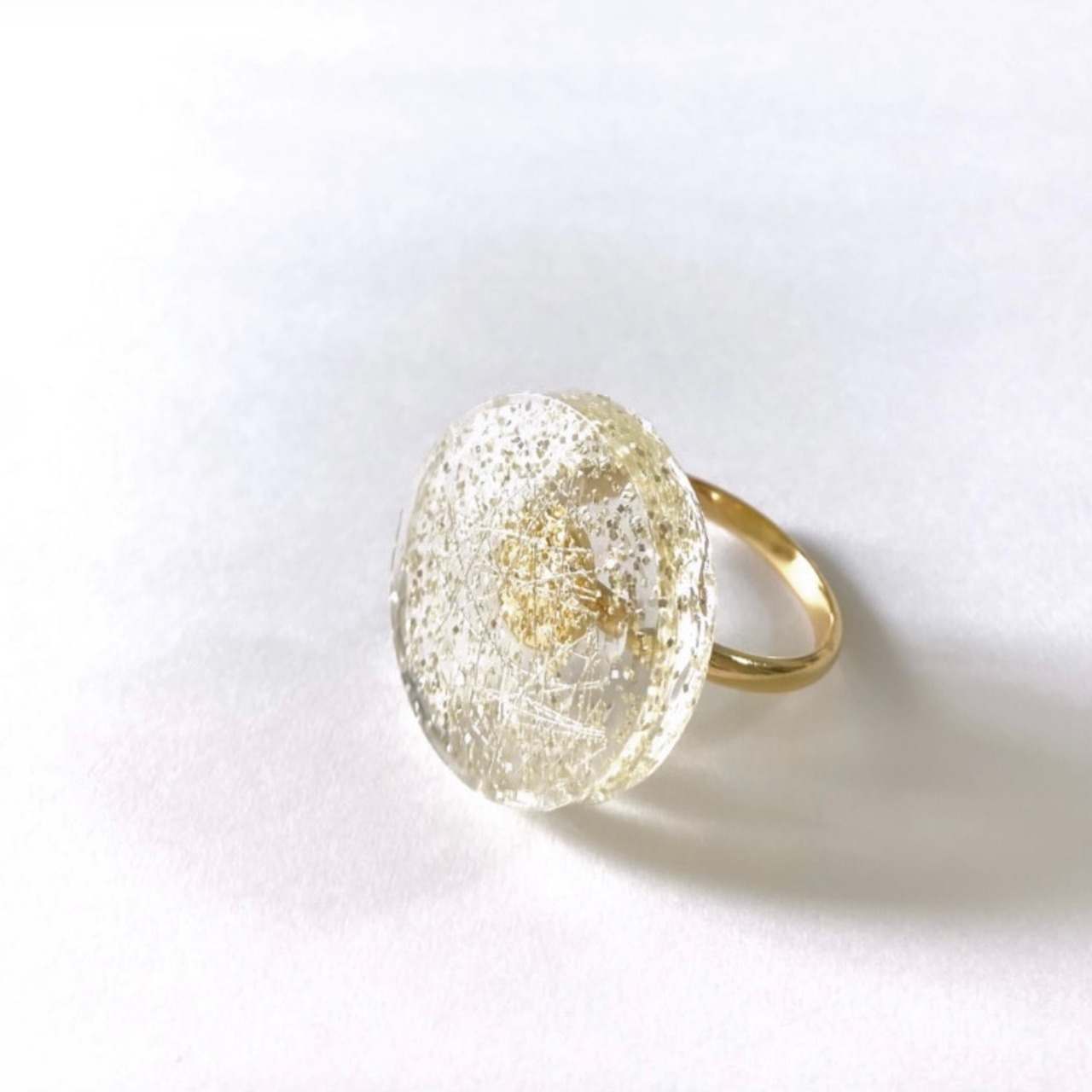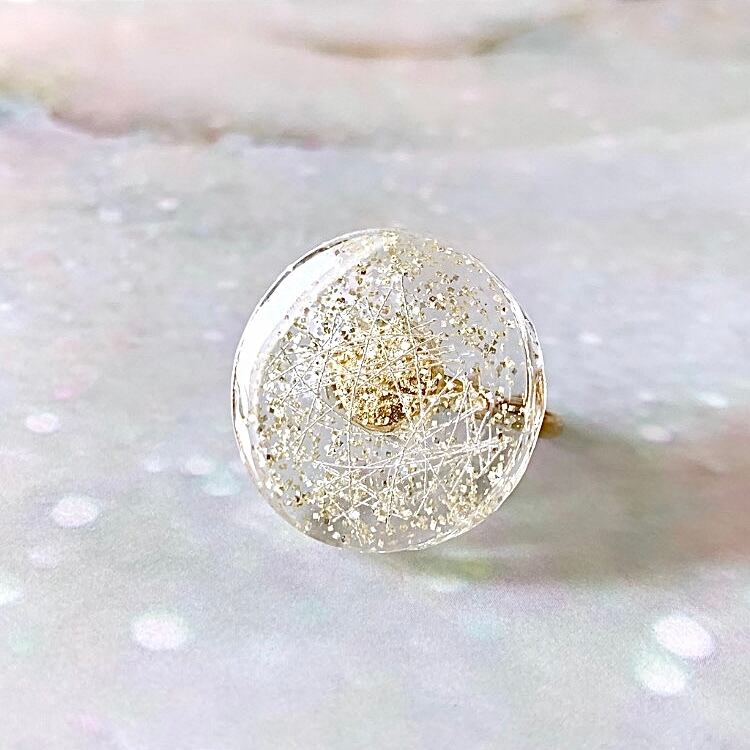 透明な樹脂に散りばめられた繊細な純銀のラメ。
