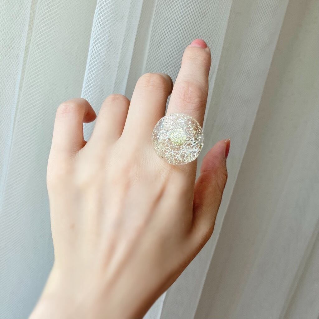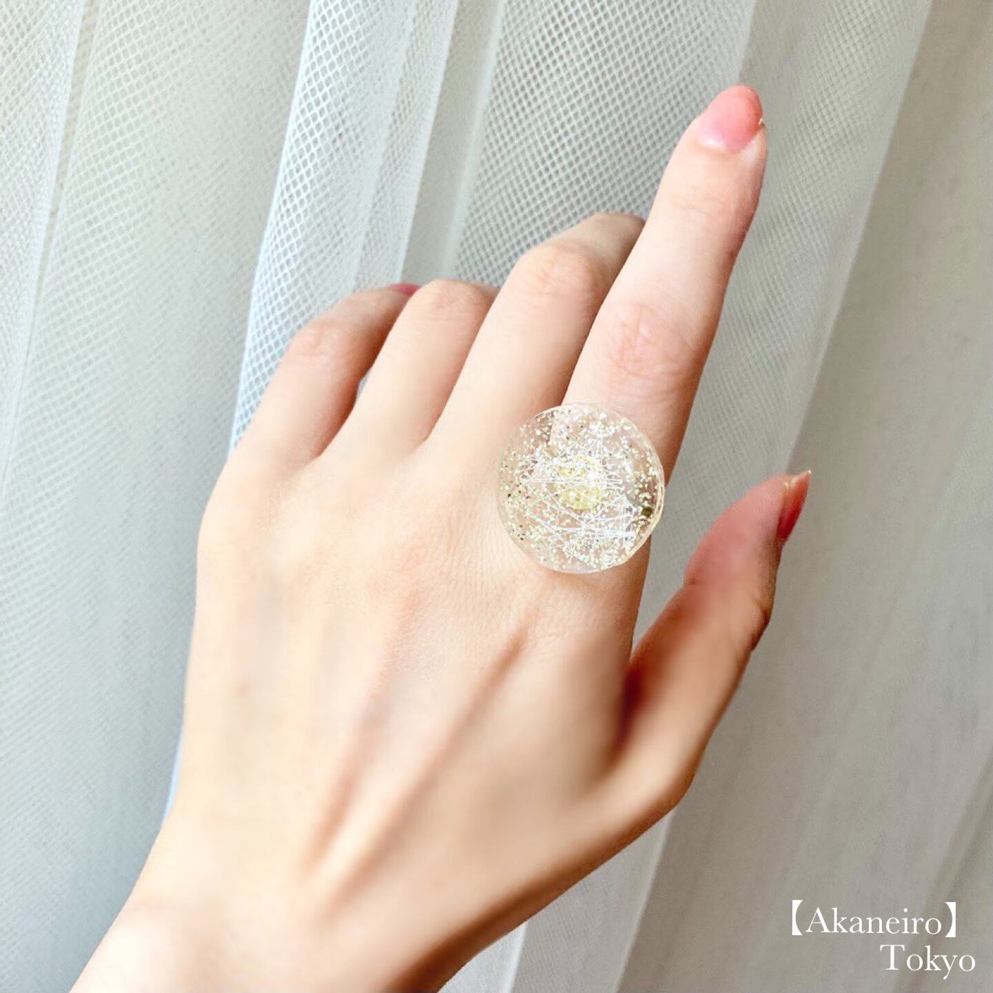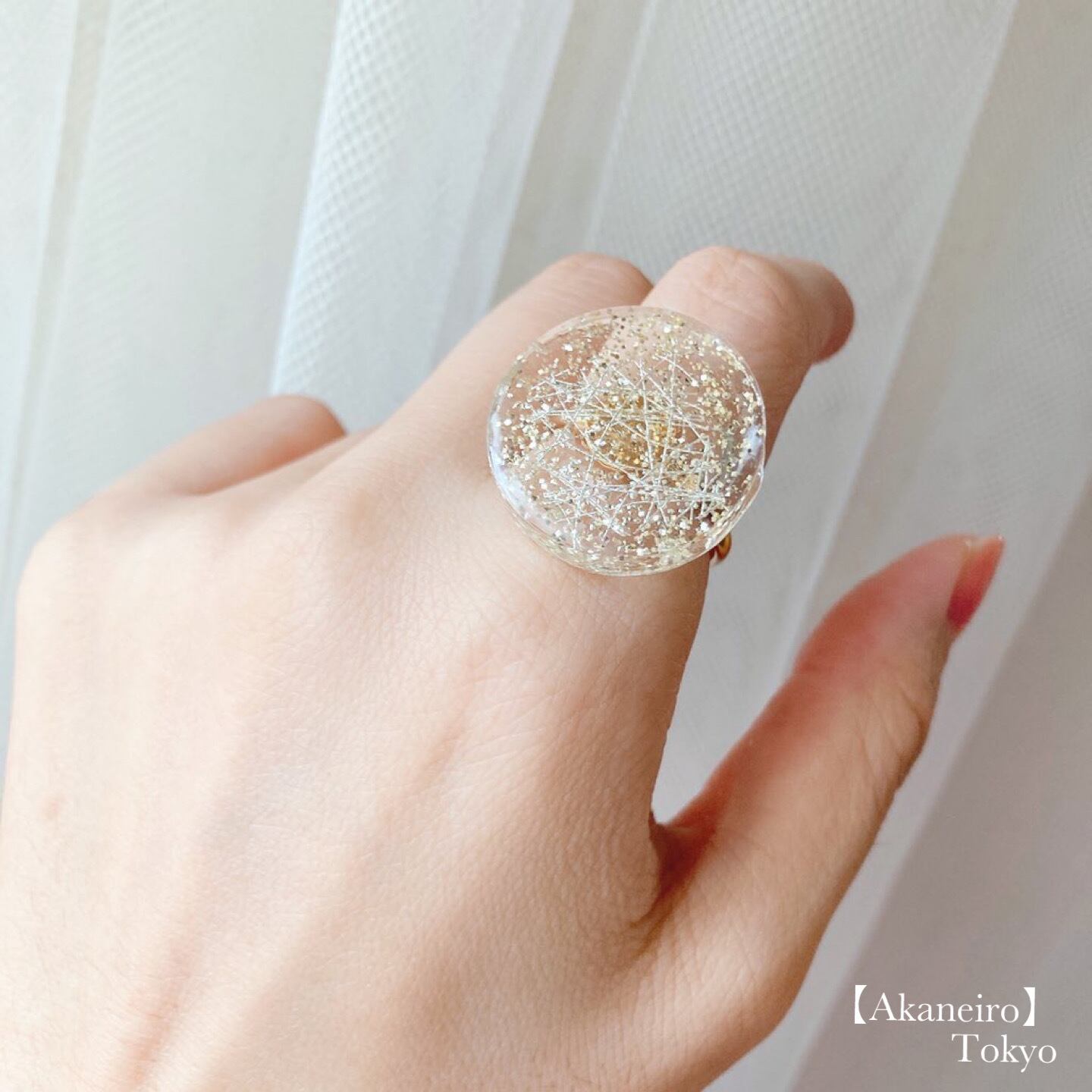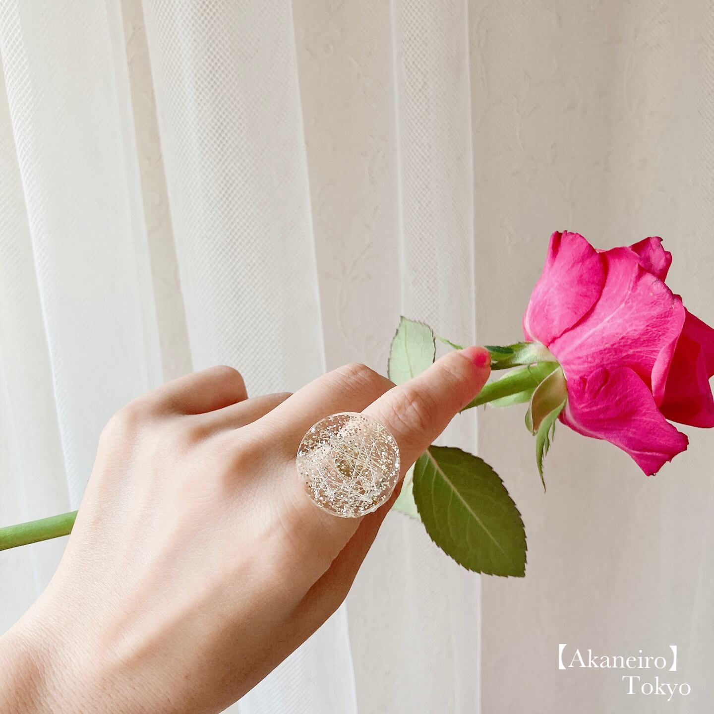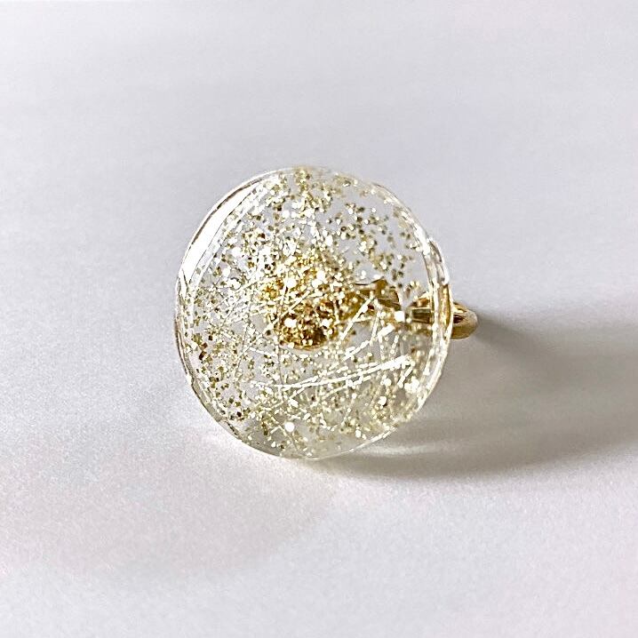 透明な樹脂に散りばめられた繊細な純銀のラメ。