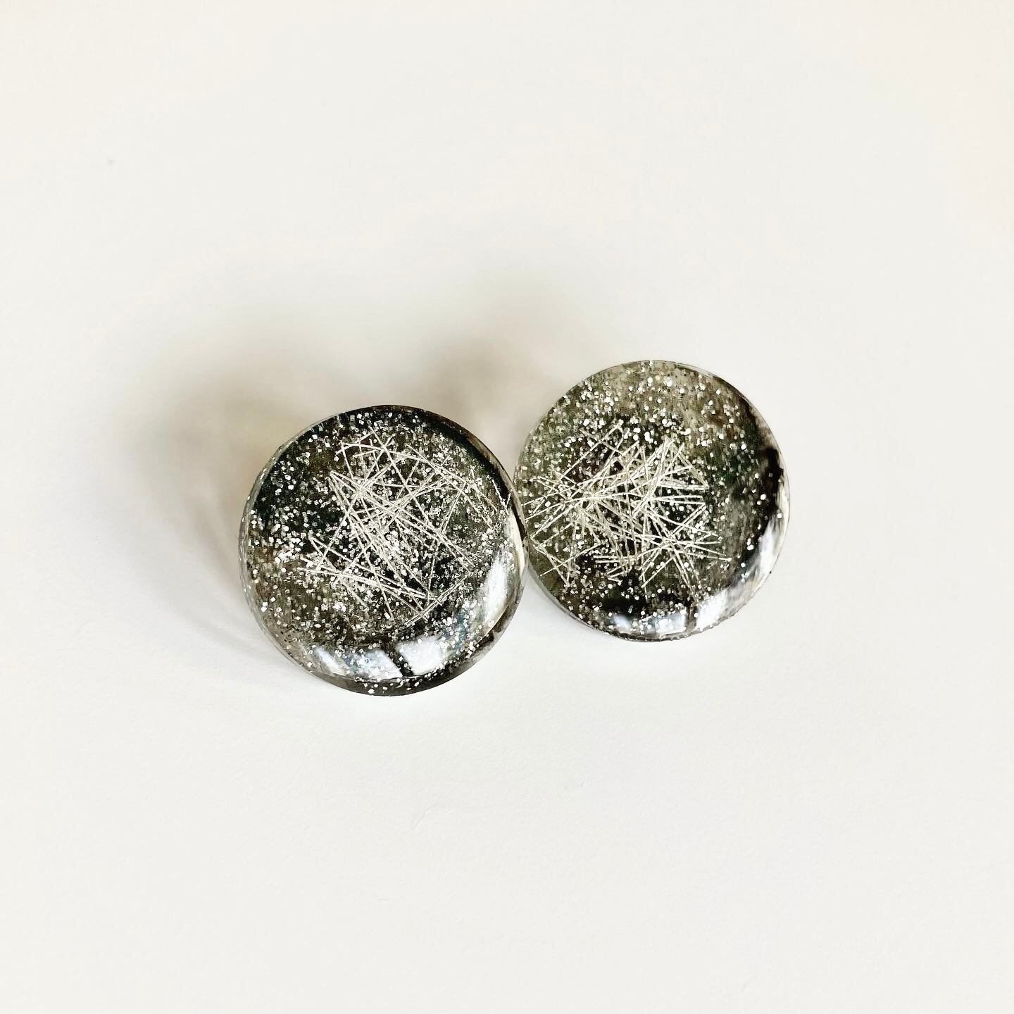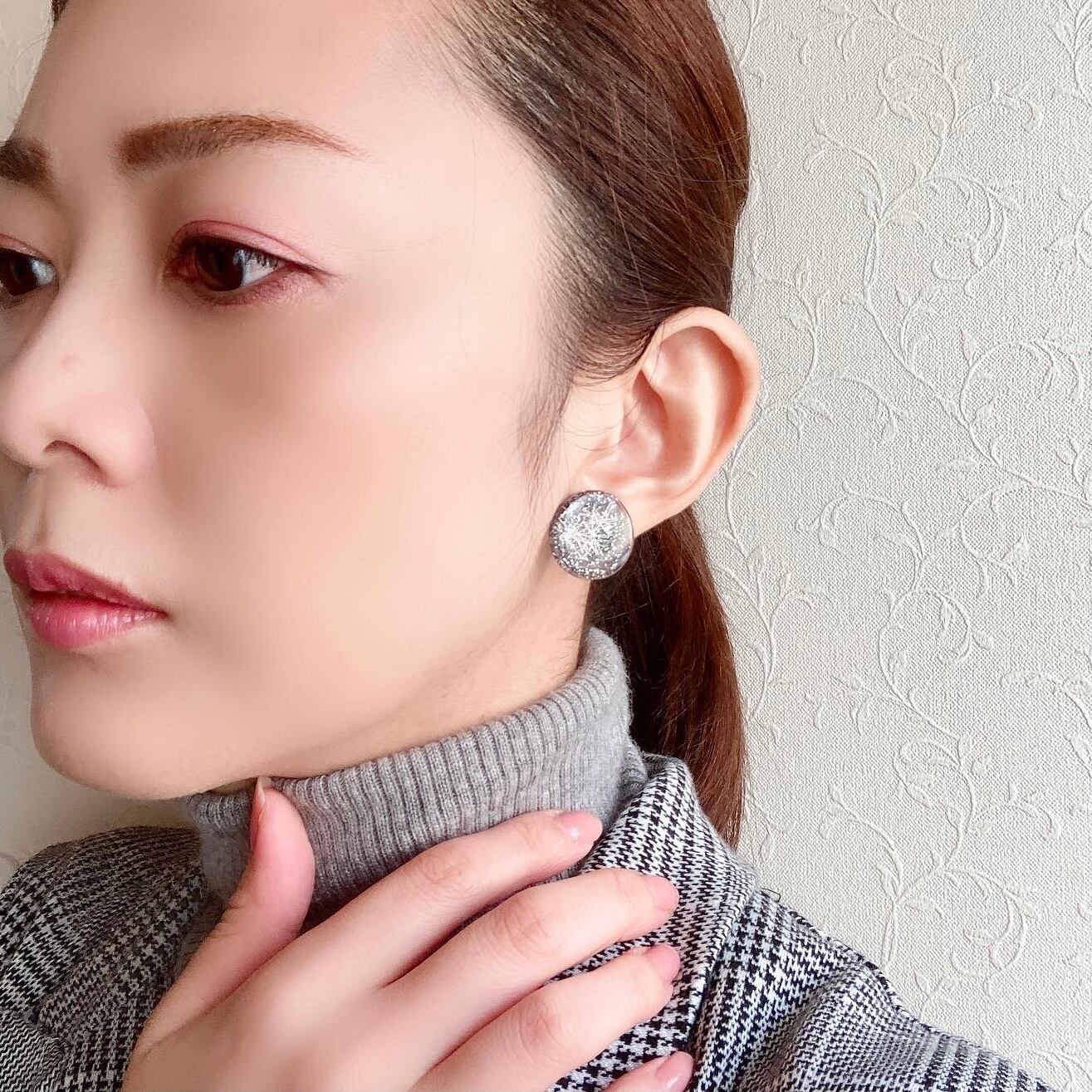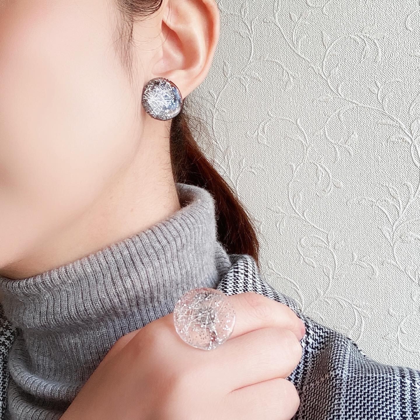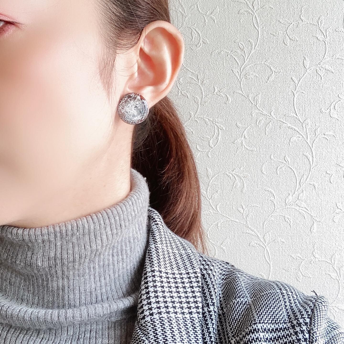 イヤリング•ピアス金具•樹脂ピアスからお選びください。イヤリングは痛くなりにくいとご好評の、シリコンゴム付き蝶バネタイプです。