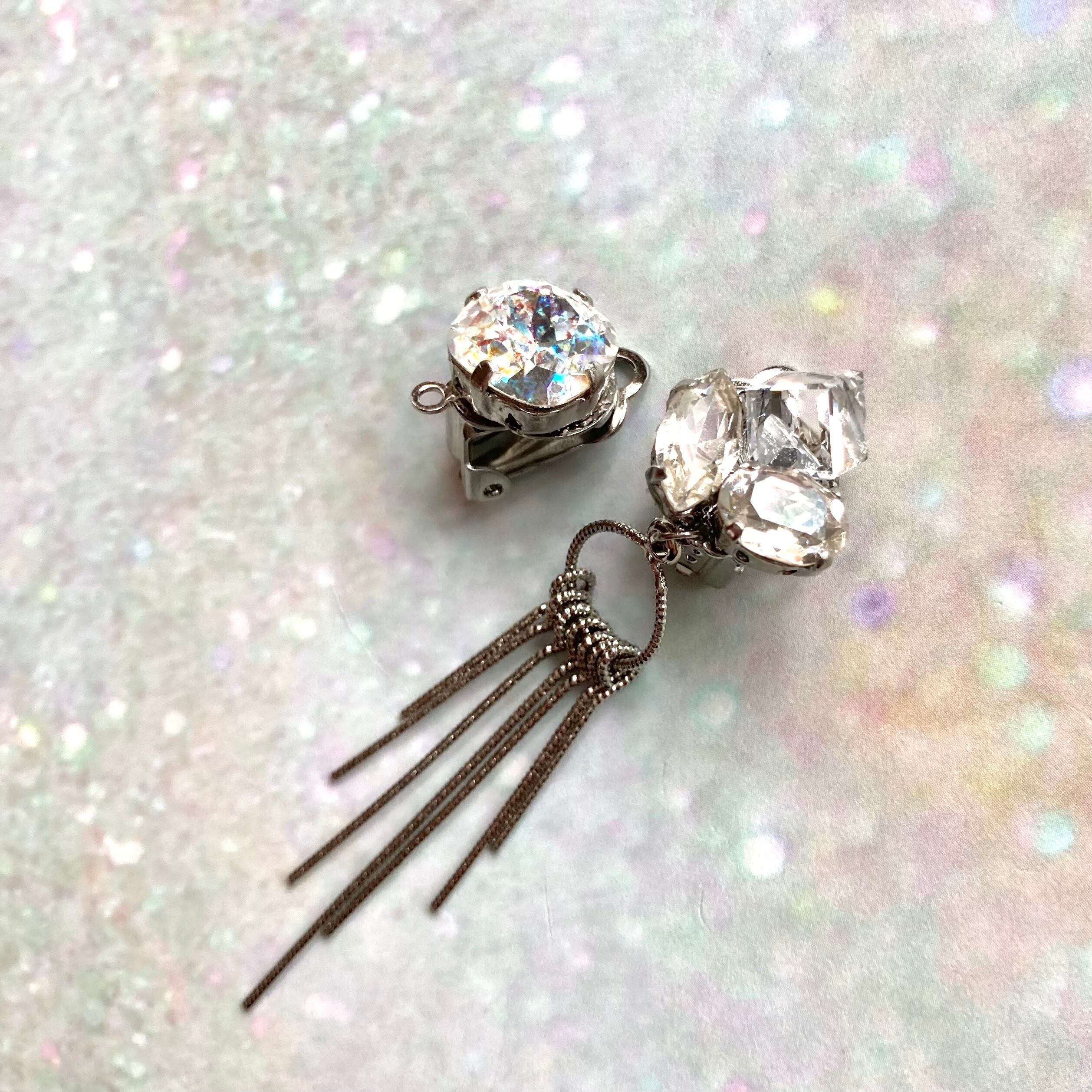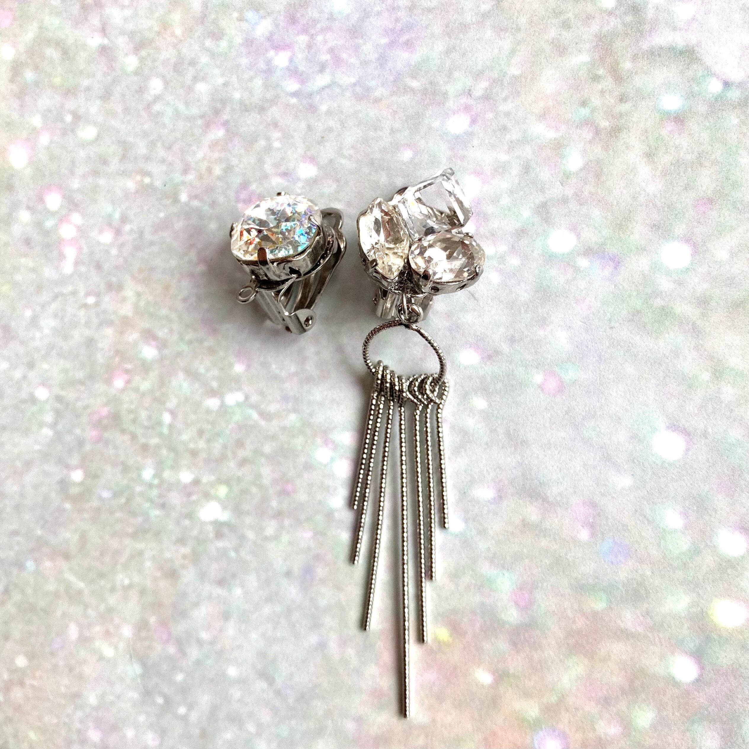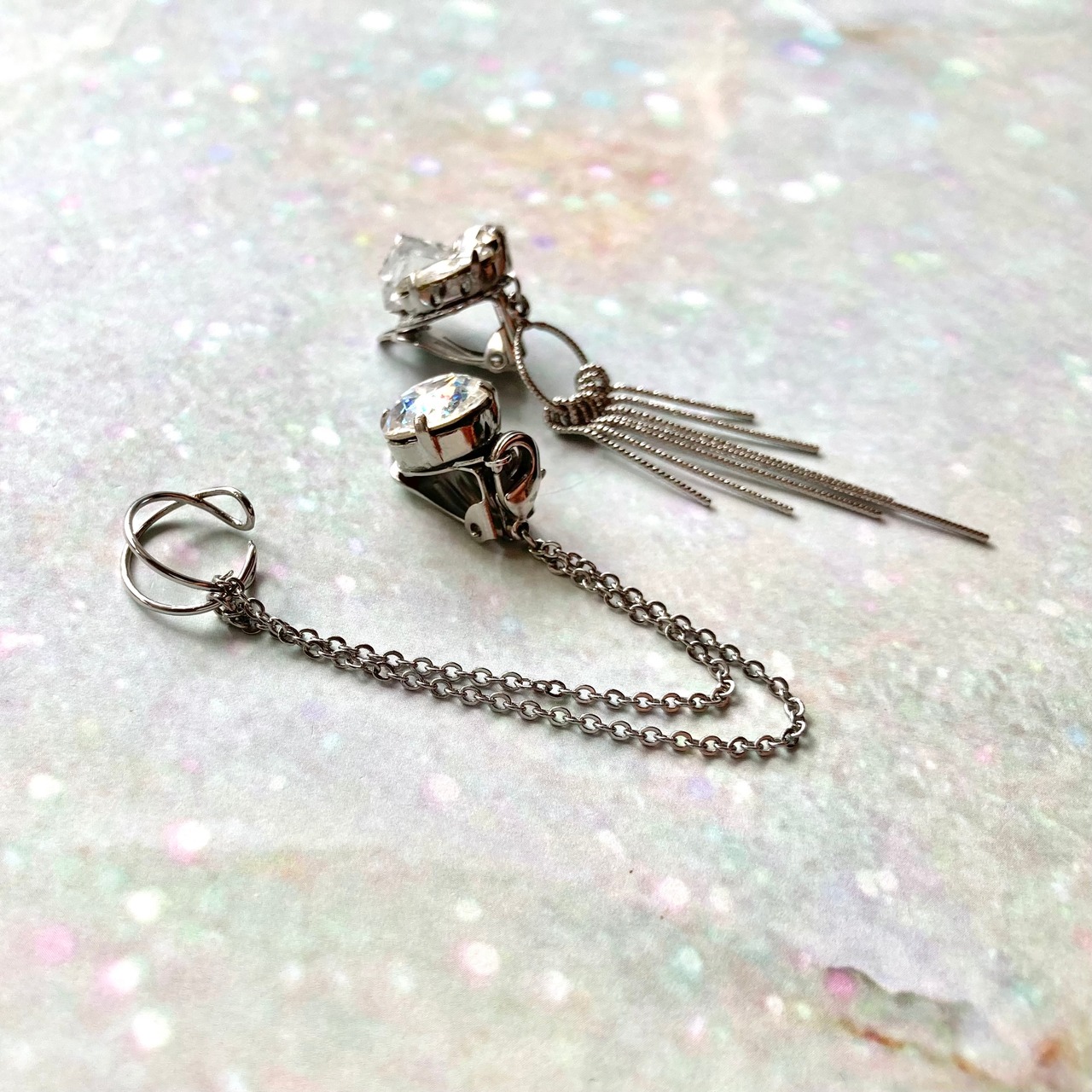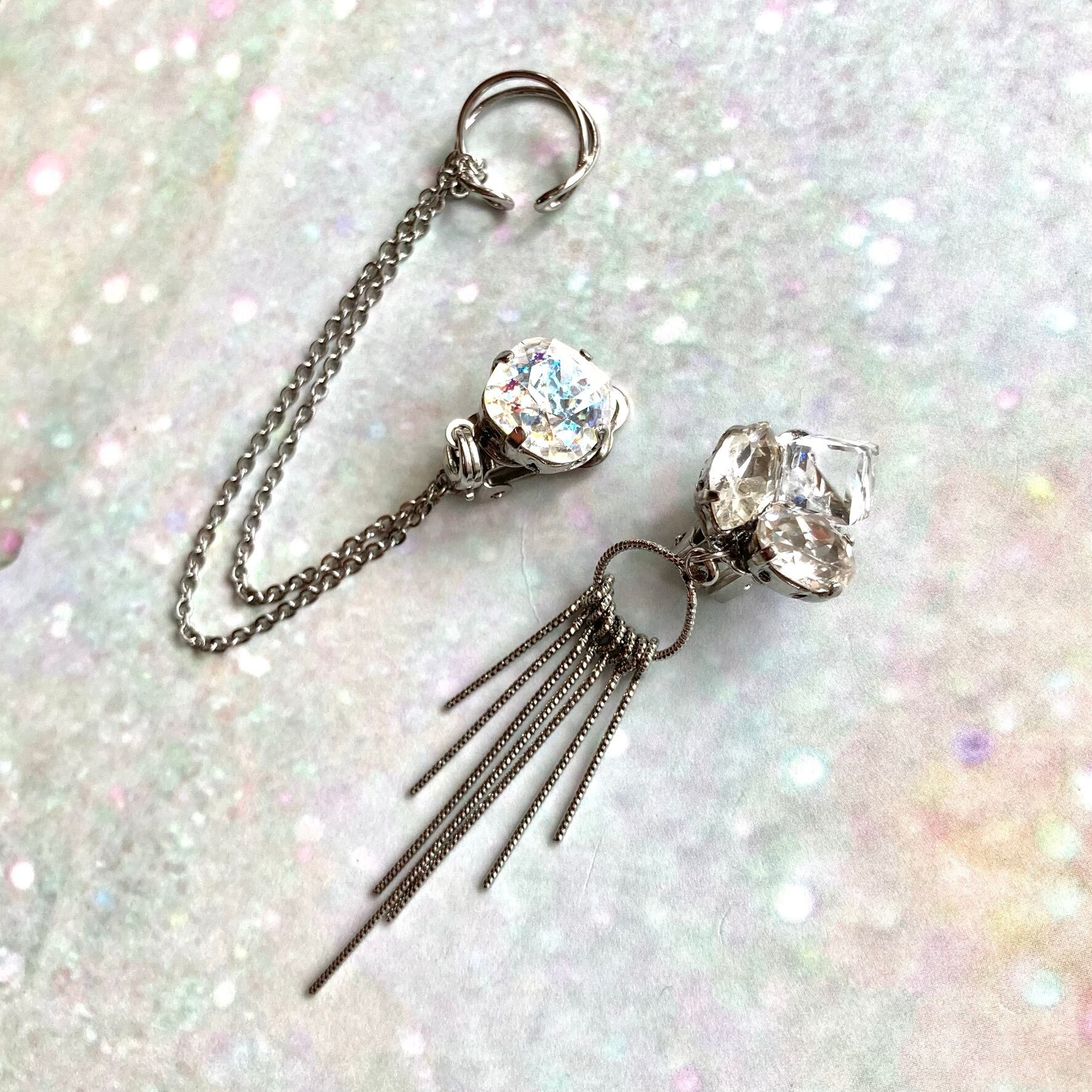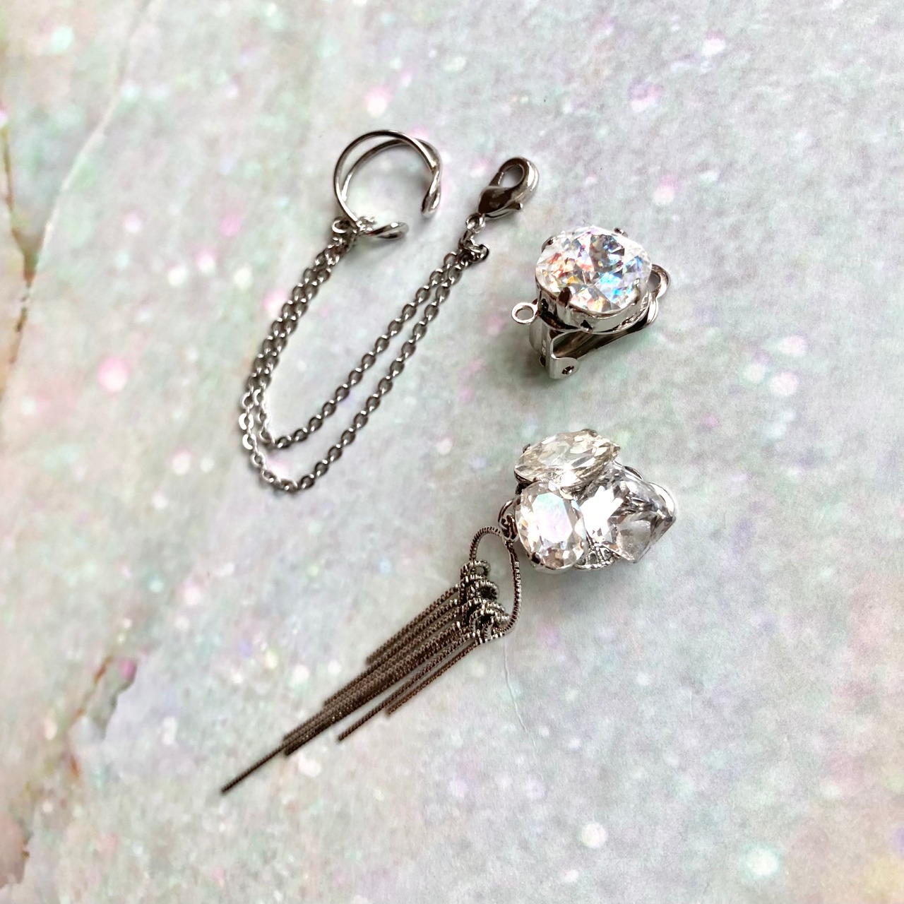 ①イヤーカフとイヤリングの華やかなアシンメトリースタイル