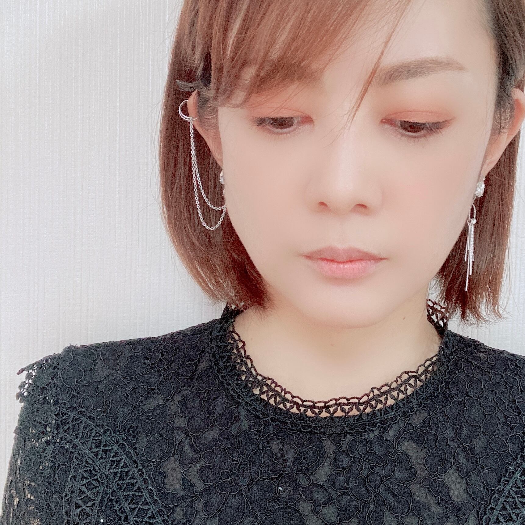 ②イヤーカフを外した、アシンメトリーなイヤリングスタイル