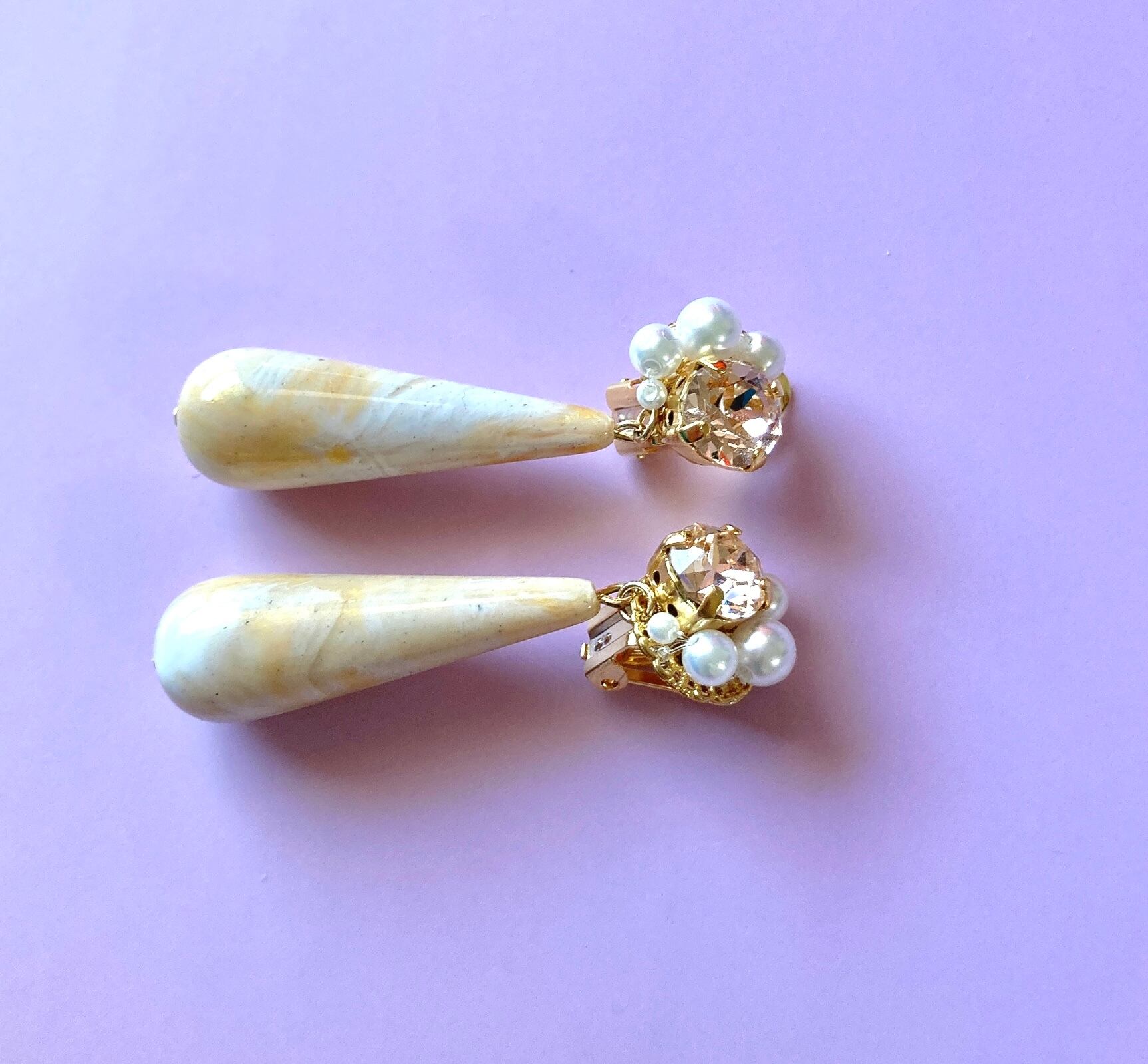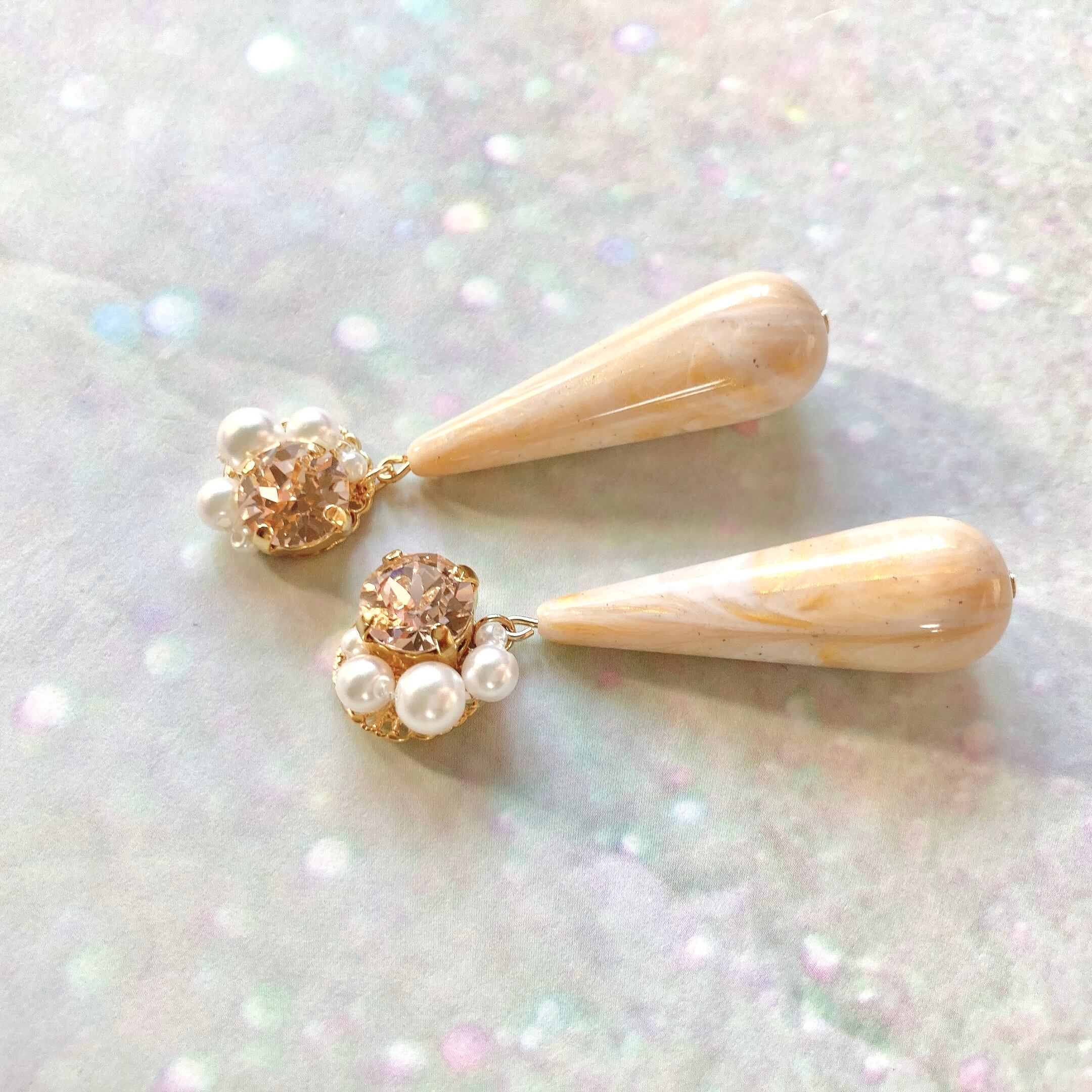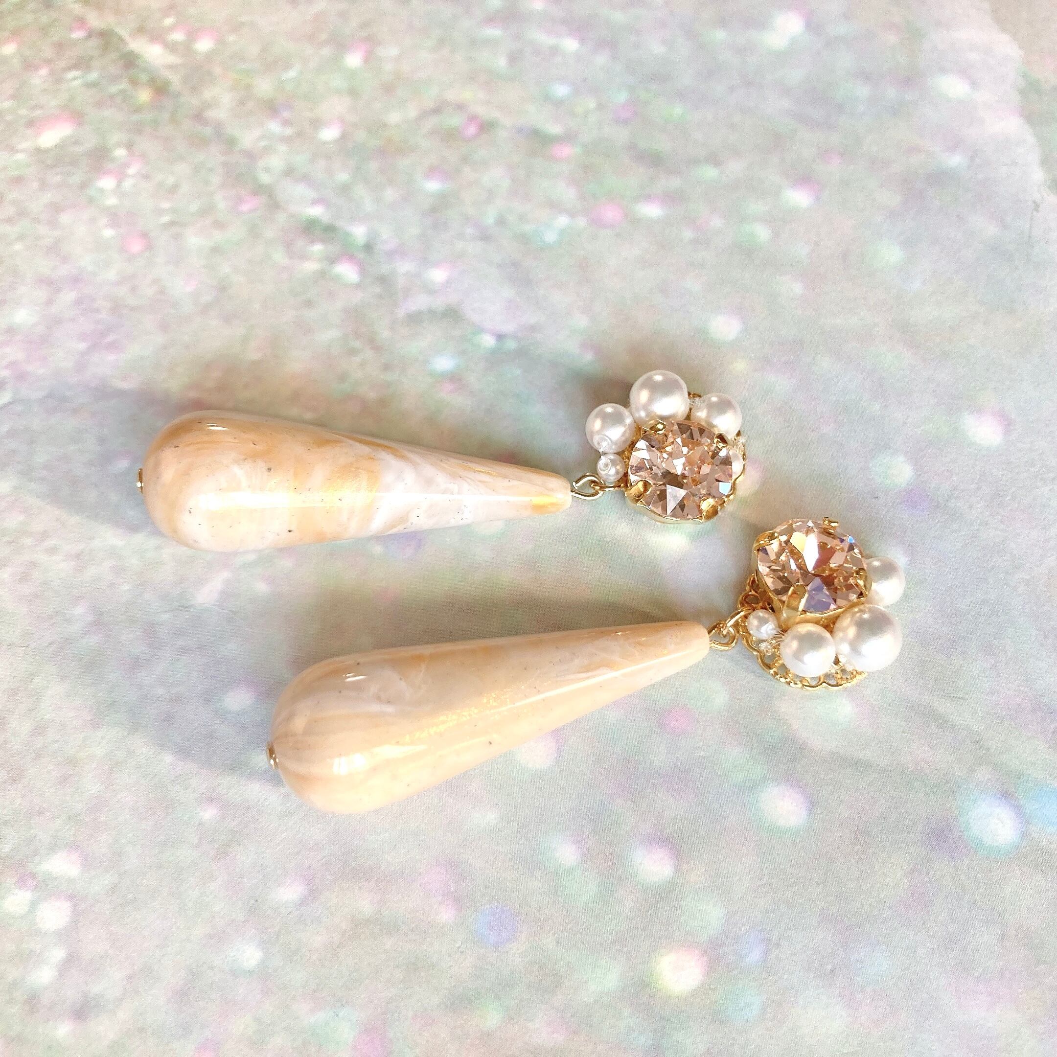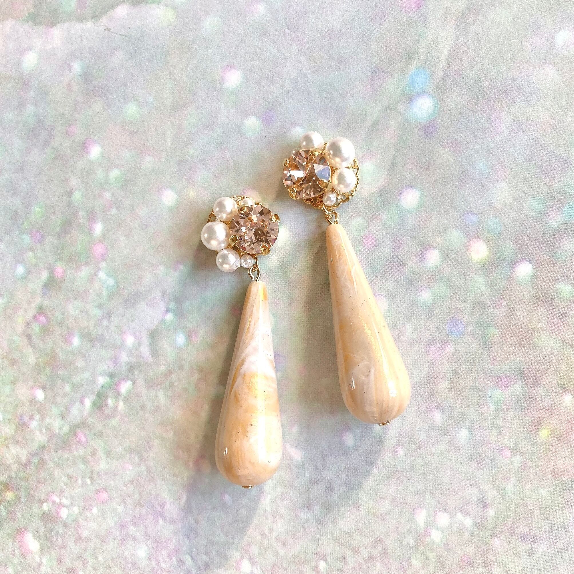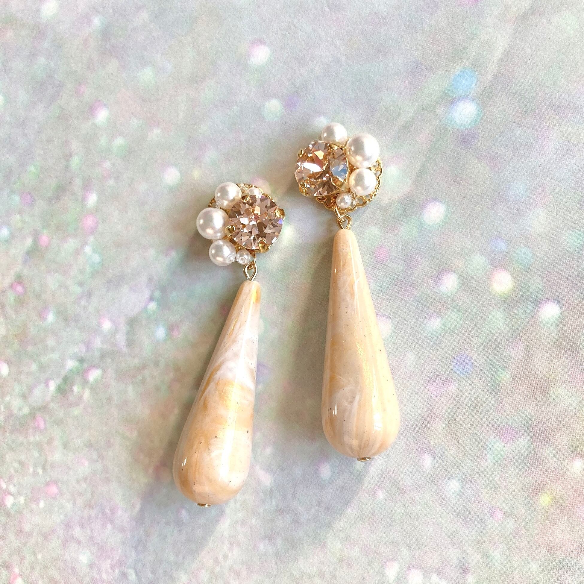 ドロップ型のパーツには、天然石のようなマーブル模様が入っています。