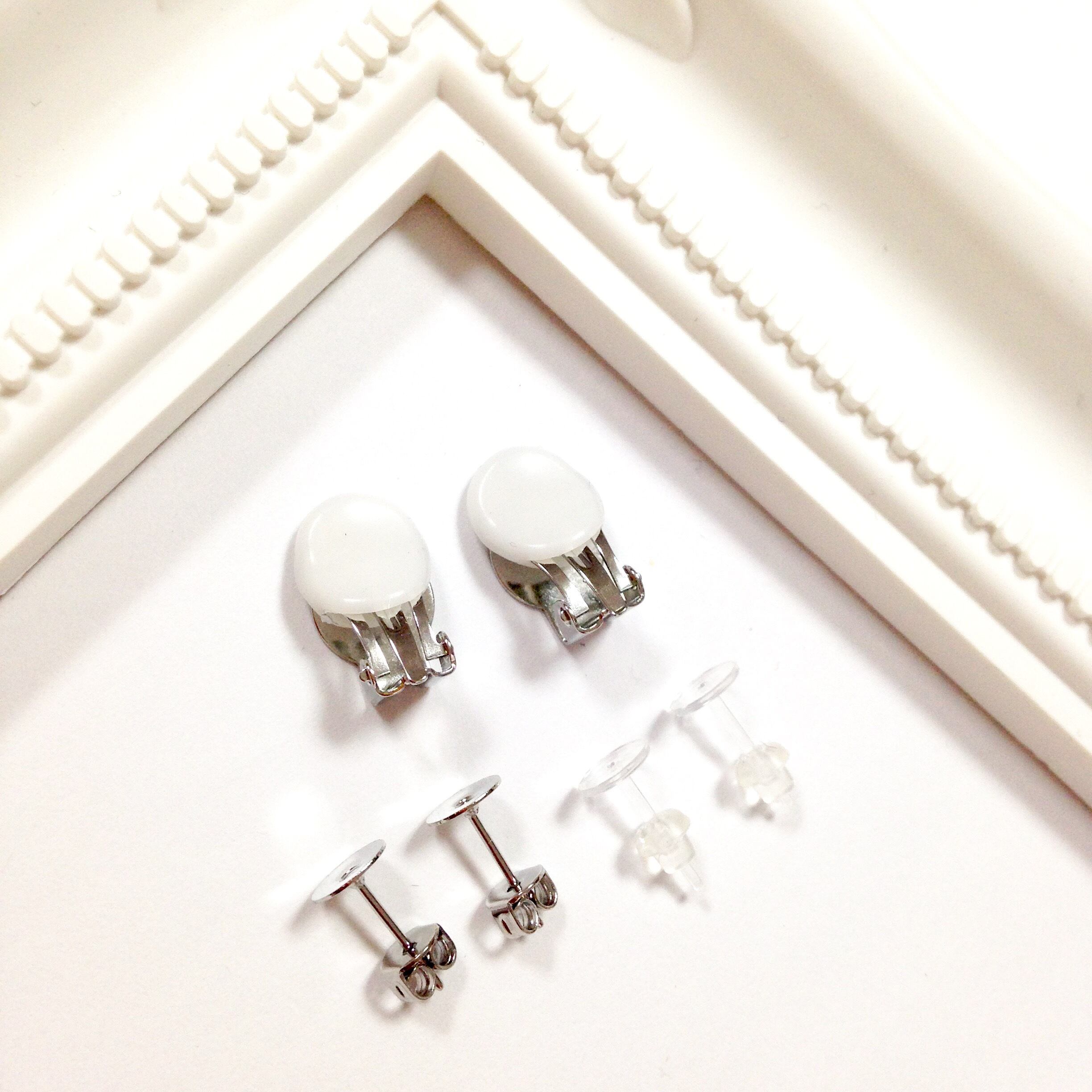 痛くなりにくいと好評のゴム付きイヤリング金具、ピアス金具、樹脂ピアスからお選び頂けます。