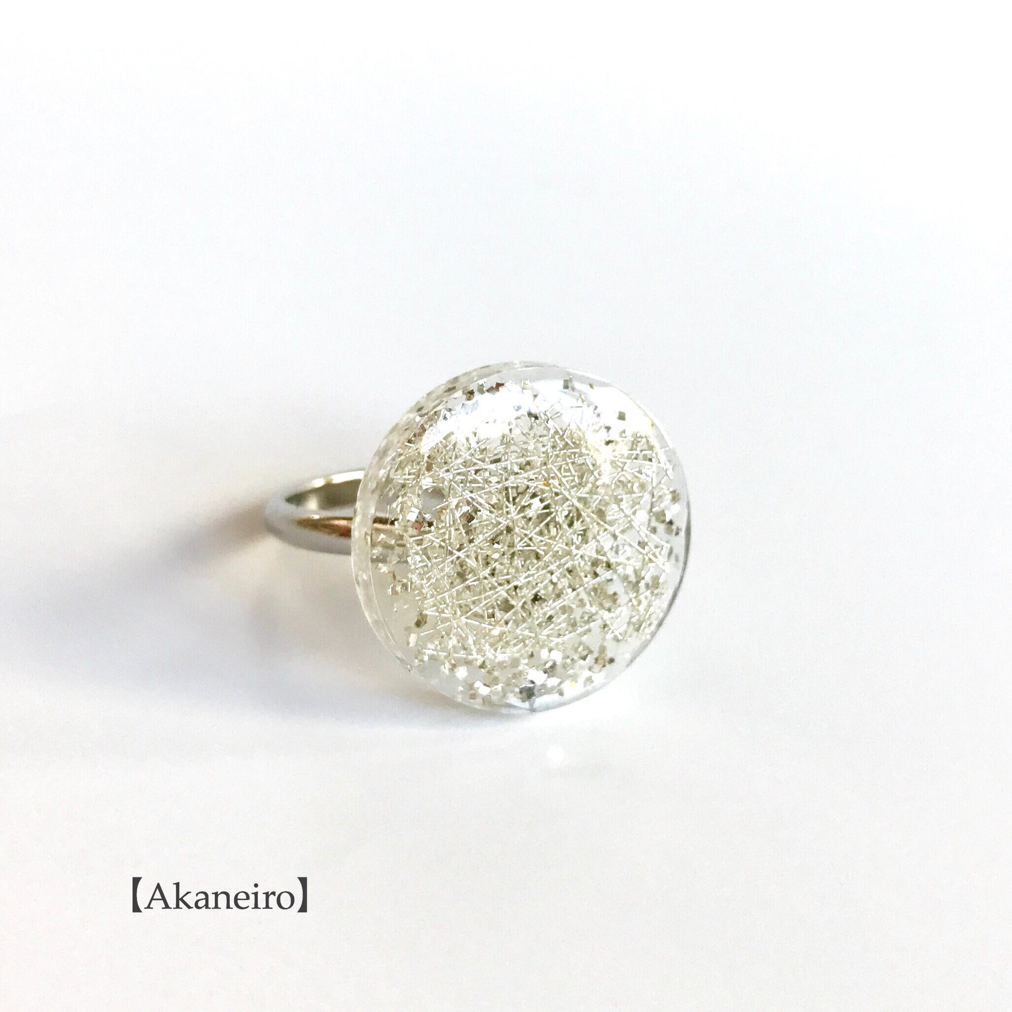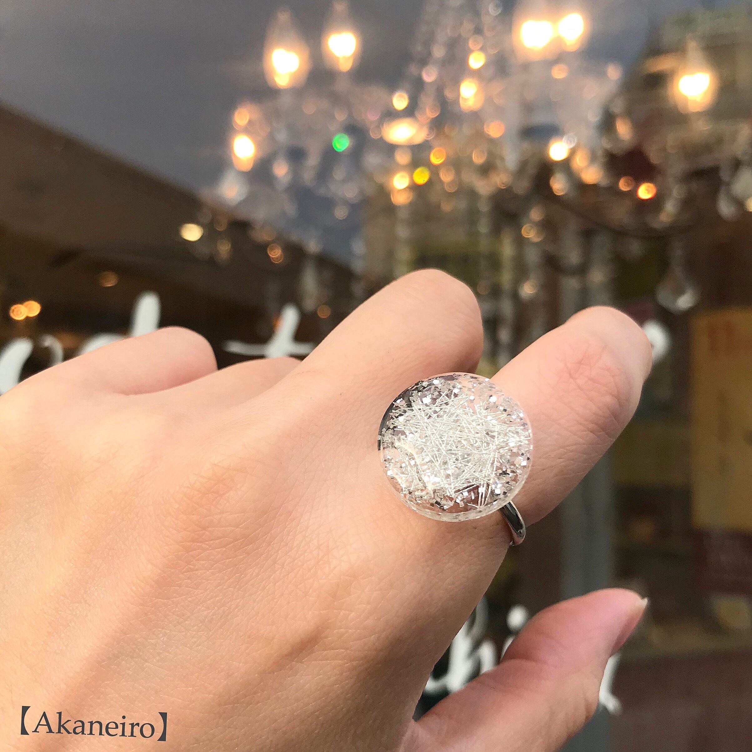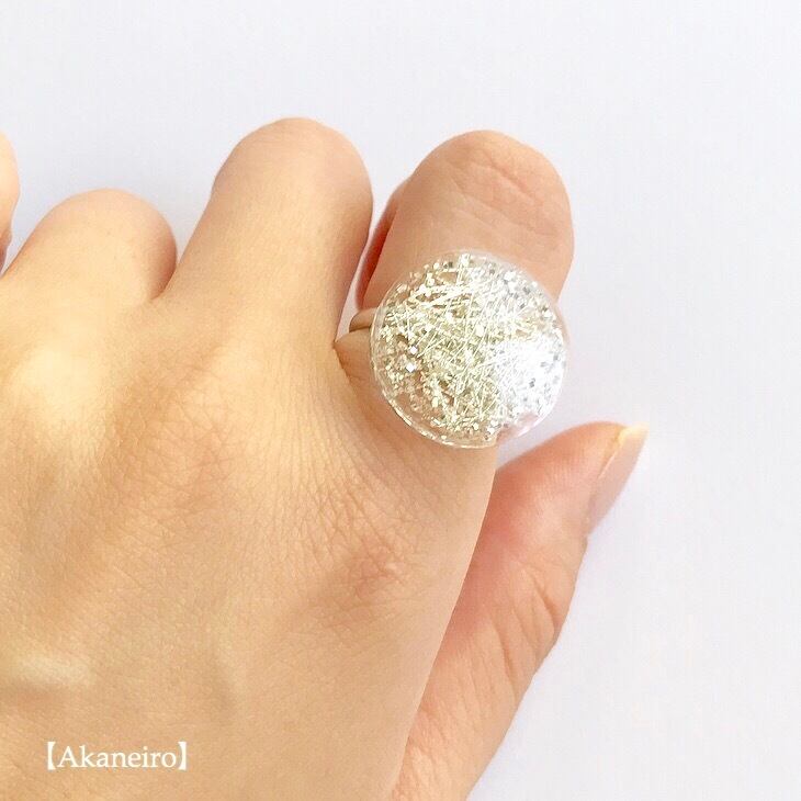まんまる、リング、上品、シンプル、キラキラ、純銀、透明感、雪、雪の結晶、結晶、煌めき、クリスマス、冬