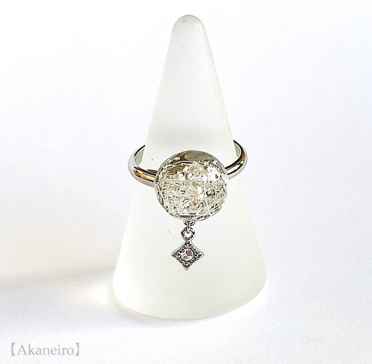 リング部分もシルバーカラーで、全体が白銀の透明感にあふれています。